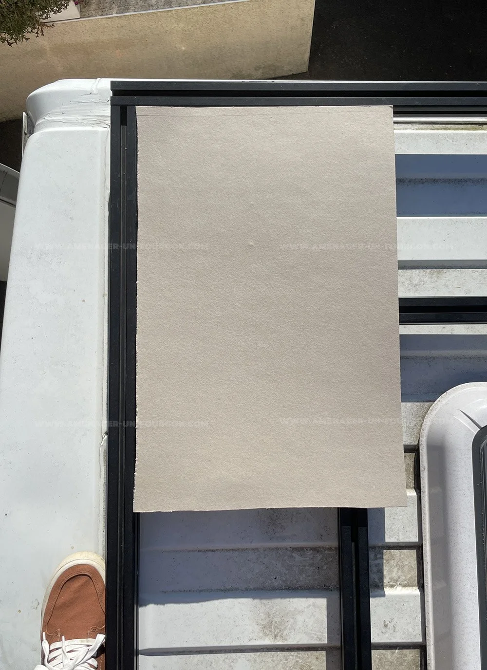 Il existe plusieurs solutions pour installer cette antenne à plat sur un toit de véhicule, mais pour la faire courte ces solutions sont soit horriblement chères (plus cher que l’antenne elle-même parfois), soit uniquement dispo à l’import et donc long et cher également à obtenir, soit moyennement adapté à notre situation (nous souhaitions l’installer de la façon la plus discrète possible, idéalement entre les montants de notre galerie de toit)