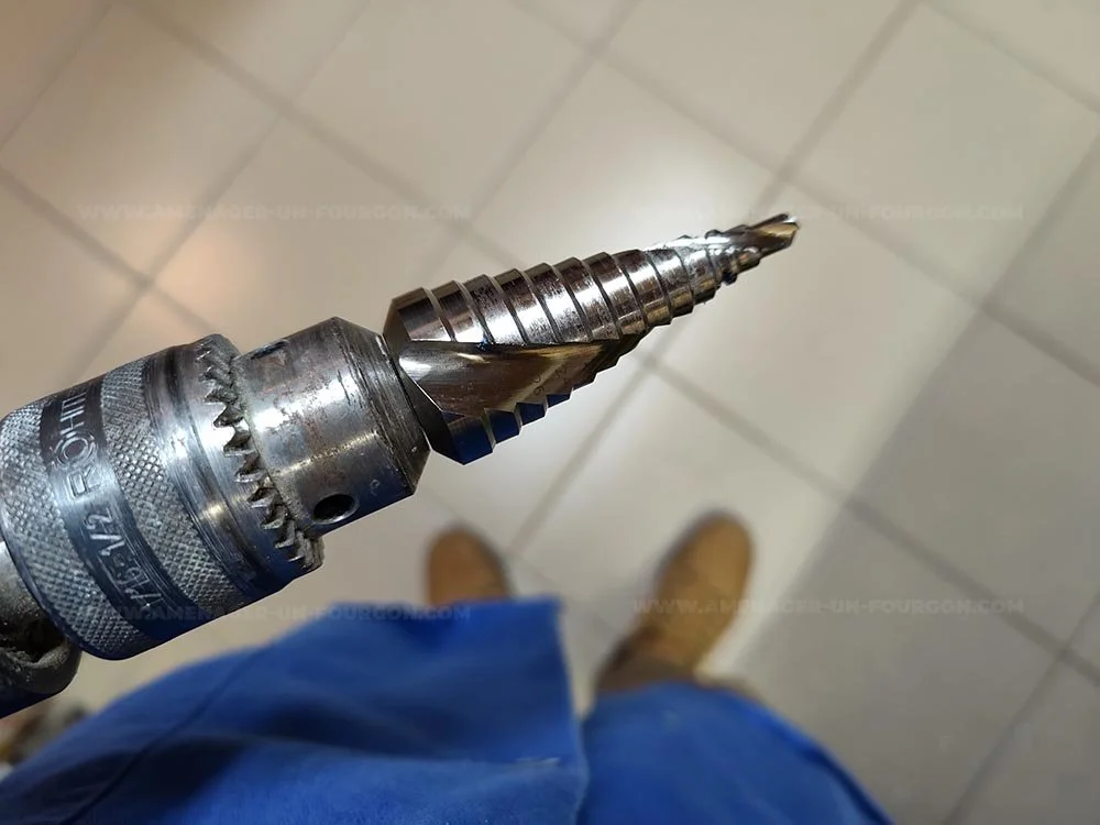 Pour réaliser les perçages au bon diamètre, nous avons utilisé un foret étagé à spirale.