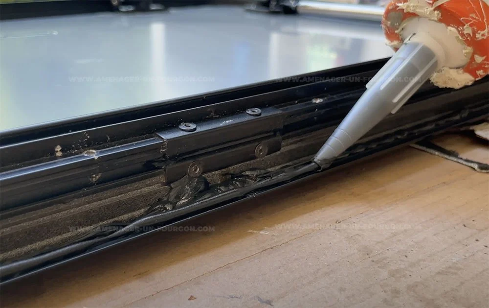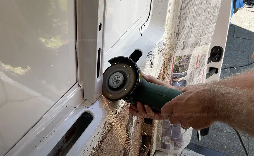 Si tout est bon, vous pouvez sortir la Dremel et enlever les aspérités de la découpe afin d’avoir une pose saine de la baie. Il est aussi très important de mettre de la peinture antirouille !