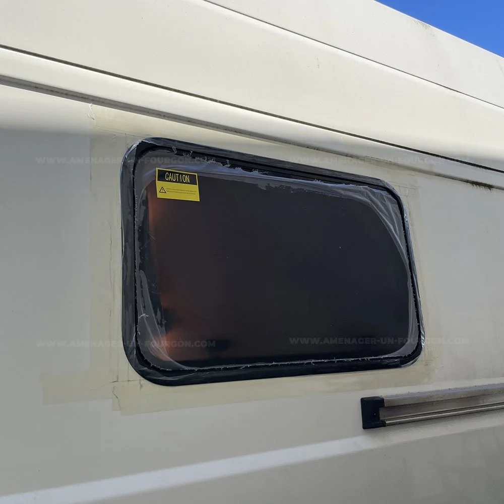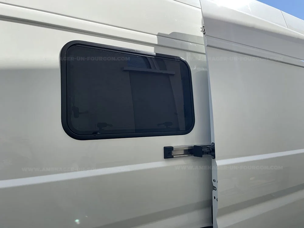 Nous n'avons pas installé de baies sur les portes arrières par économie budgétaire dans un premier temps, mais nous souhaitons tout de même en ajouter à terme. Le but étant ici d’avoir une visibilité 360 sur ce qui se passe autour du fourgon et surtout d’apporter encore plus de lumière dans l’espace de vie.
