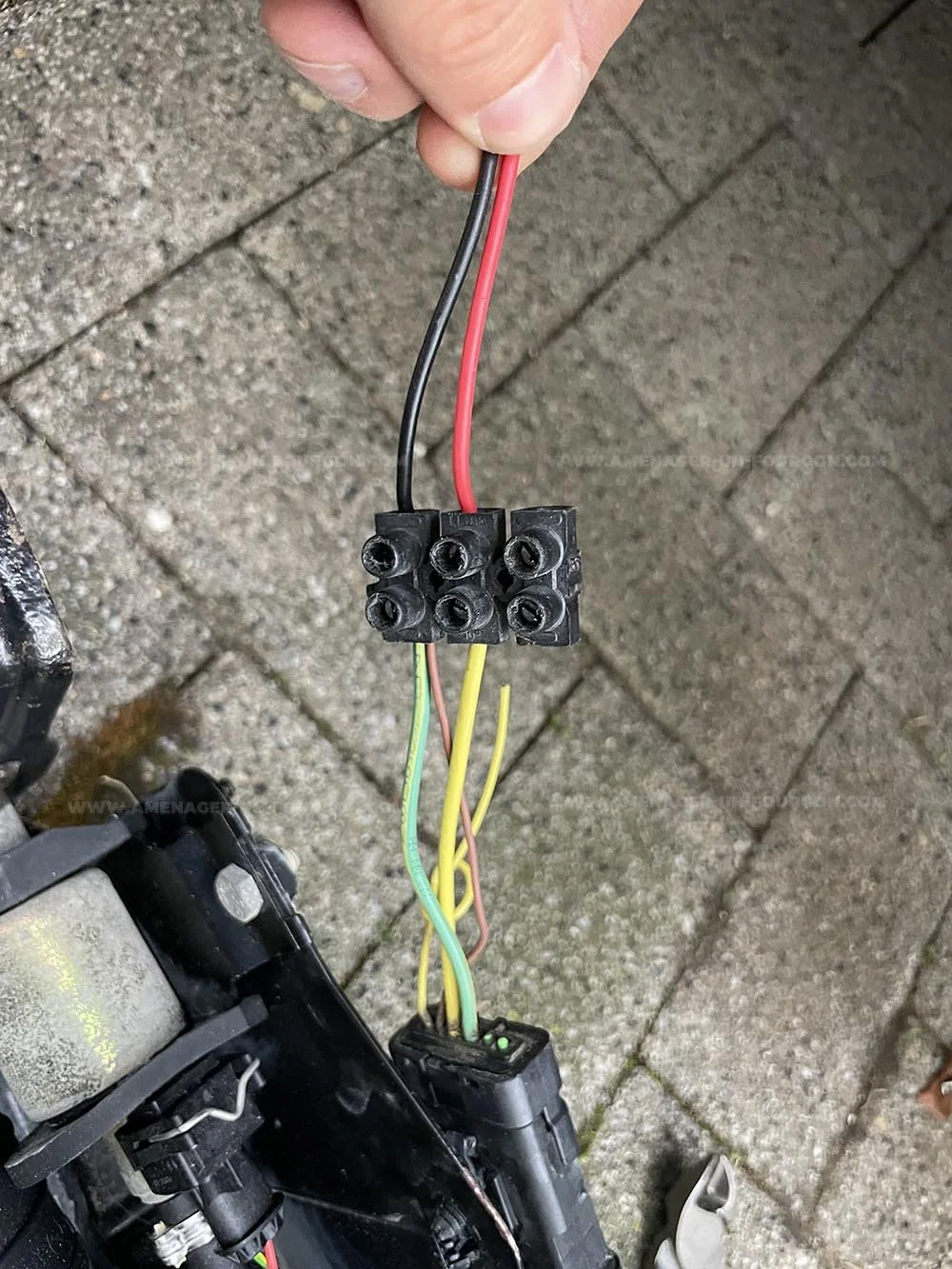 Pour notre installation finale, nous avons relié le fil marron à un bouton de commande. Pour faire simple, il faut relié ce fil marron à une masse et intégrer un bouton sur son passage.