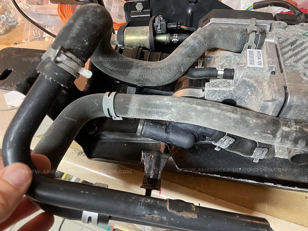 Cette photo a été réalisée lors d’un premier test, d’où le fait qu’il manque du liquide de refroidissement.