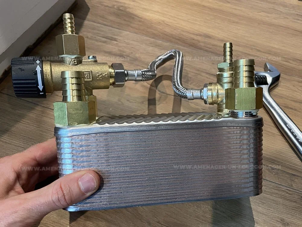 Même si vous avez un mitigeur au niveau de l’évier, pouvoir réduire la température de l’eau chaude peut être une bonne idée car elle est vraiment brulante en sortie d’échangeur.
