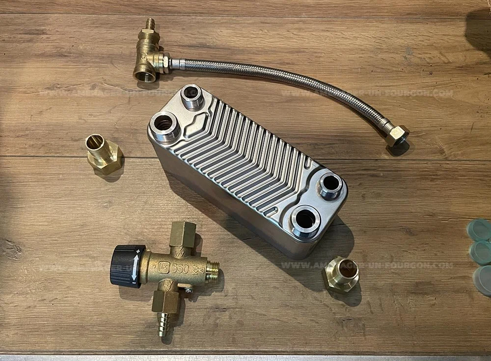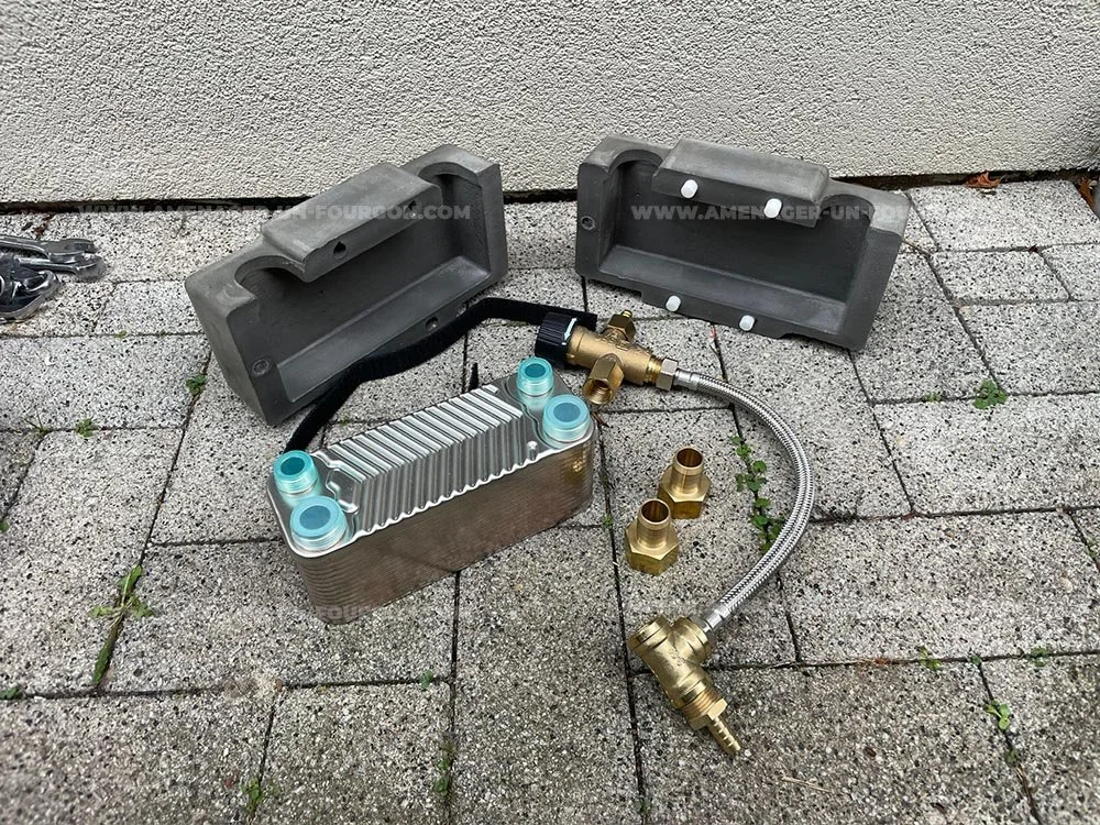 Il existe énormément d’échangeurs à plaques, c’est assez déroutant lorsque l’on commence à s’y intéresser. Comment choisir entre un échangeur 30 plaques à 50€ et un autre 30 plaques à 500€ ? Nous n’avons pas trouvé la réponse… C’est pourquoi notre choix s’est arrêté sur des modèles vendus directement par des sites spécialisés dans l’aménagement de vans, fourgons ou bateaux comme Atlantik Shop.