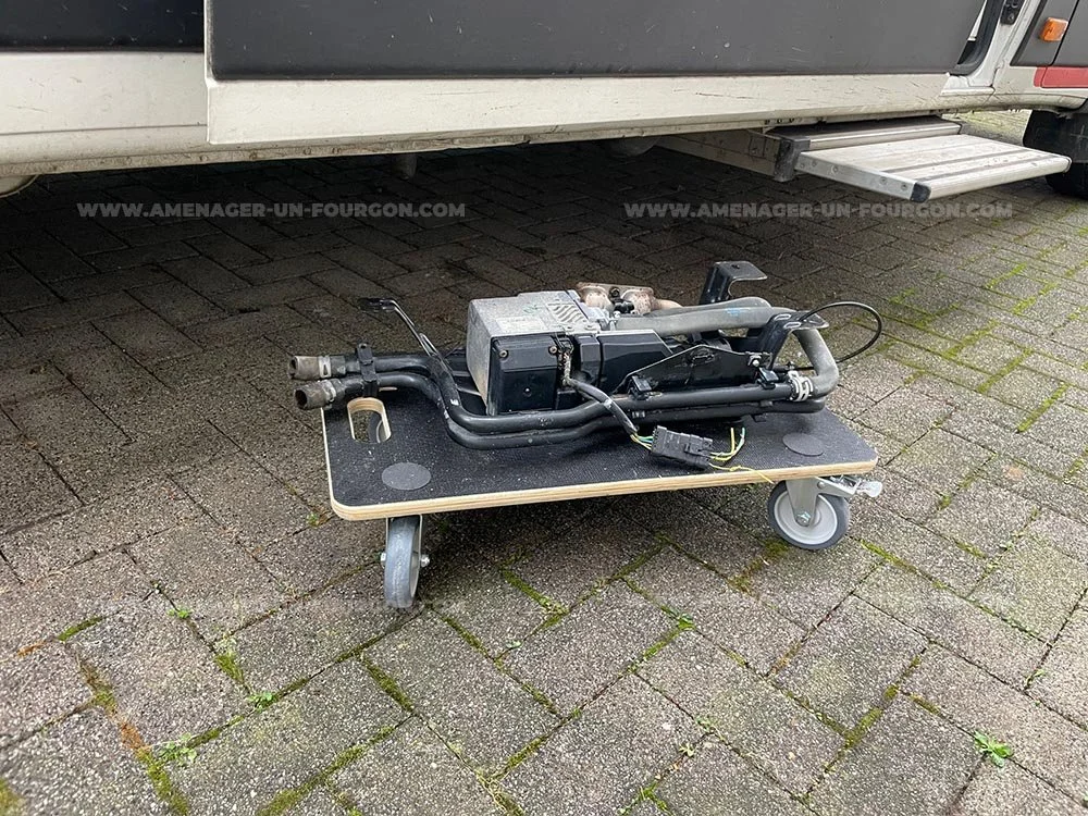 Il est temps d’attaquer le gros du morceau : l’installation de la chaudière Diesel Webasto Thermo Top Z/C-D.