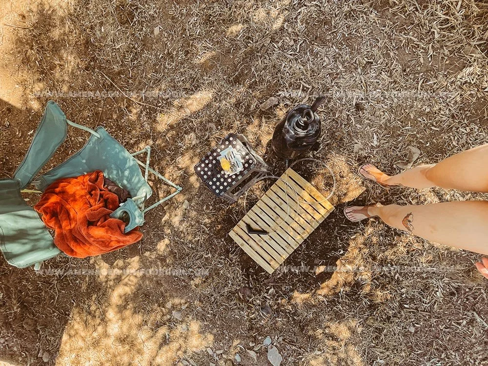 Le tabouret pliant : Nous nous en servons pour beaucoup de chose au quotidien, mais aussi pour la douche en extérieur pou tout simplement poser nos savons et shampoings solides.